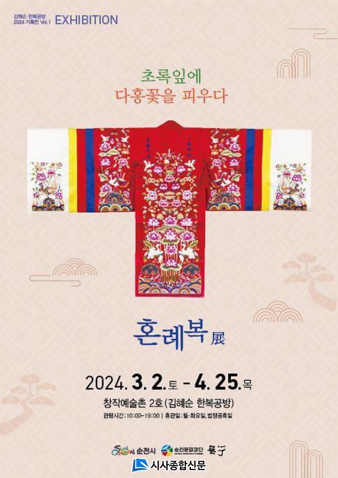 2024³â <¶ã¾ÈÀÇ Çູ>À» ÁÖÁ¦·Î ±âȹµÈ ¡®±èÇý¼ø ÇѺ¹°ø¹æ¡¯ÀÇ Àü½Ã»ç¾÷ ù ±âȹÀüÀº <ÃÊ·ÏÀÙ¿¡ ´ÙÈ«²ÉÀ» ÇÇ¿ì´Ù> ¡®Á¶¼±½Ã´ëÀÇ ÀüÅë È¥·Êº¹¡¯ÀüÀ¸·Î, Á¶¼±½Ã´ë È¥·Ê¿¡ »ç¿ëµÇ¾ú´ø º¹½ÄÀ» Áß½ÉÀ¸·Î Ȱ¿Ê¿¡ ¼ö³õ¾ÆÁø È·ÁÇÏ°í ¾Æ¸§´Ù¿î ÀüÅëÀÚ¼ö¿Í °¢Á¾ È¥·Ê ¼ÒǰµéÀ» Àü½ÃÇÑ´Ù.