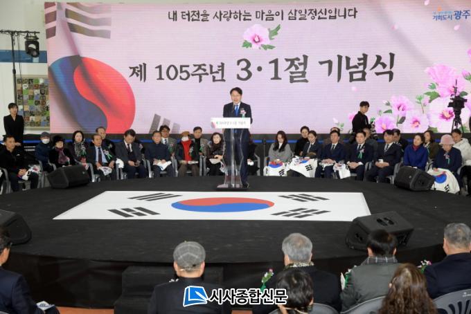 ° ½ÃÀåÀº ¡°À̰ÍÀÌ ¿ì¸®°¡ »ç¶ûÇÏ´Â ±¤ÁÖÀÇ ÀÚ¶û½º·¯¿î ¸ð½ÀÀÌ´Ù. ÀÌ ÅÍÀüÀ» »ç¶ûÇϰí ÁöŰ´Â °ÍÀ̾߸»·Î 3‧1Á¤½ÅÀ» À̾´Â °Í¡±À̶ó°í °Á¶Çß´Ù.
