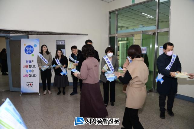 ÀÌ ³¯ Çà»ç´Â ³²¿ø½Ã û·Å¡¤¹ÝºÎÆÐ Á¤Ã¥ÀÇ ÀÏȯÀ¸·Î, ¡ãºÎÁ¤Ã»Å¹ ±ÙÀý ¡ã±Ýǰ¡¤ÇâÀÀ¡¤ÆíÀÇÁ¦°ø ±ÝÁö ¡ã°©Áú ¹× À»Áú ±ÙÀý, ¡ã¼±°Å°ü¿©ÇàÀ§ ±ÝÁö µîÀÇ Ã»·ÅÀÇ½Ä ÇÔ¾çÀ» µ¶·ÁÇϱâ À§ÇØ ¸¶·ÃµÆÀ¸¸ç ³²¿ø½Ã °¨»ç½Ç, ÇàÁ¤Áö¿ø°ú Á÷¿ø 20¿©¸íÀÌ Âü¿©ÇÏ¿© È«º¸¹° ¹èºÎ, û·Å±¸È£ µîÀ» ÅëÇØ û·ÅÀÇ »ýȰȸ¦ ´çºÎÇß´Ù.