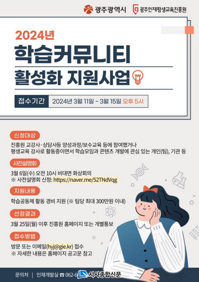 ±¤ÁÖÀÎÀçÆò»ý±³À°ÁøÈï¿ø ÀÌÃá¹® ¿øÀåÀº ¡°Áö¿ª Æò»ý±³À° ±³¡¤°»çÀÇ ¿ª·®ÁõÁø°ú ÄÜÅÙÃ÷ °³¹ßÀ» À§ÇØ À̹ø »ç¾÷À» ¸¶·ÃÇß´Ù¡±¸ç ¡°»çȸ°øÇåȰµ¿À» ÅëÇÑ Áö¿ª»çȸ ¼±¼øÈ¯ È¿°ú¸¦ ±â´ëÇÑ´Ù¡±°í ¸»Çß´Ù.
