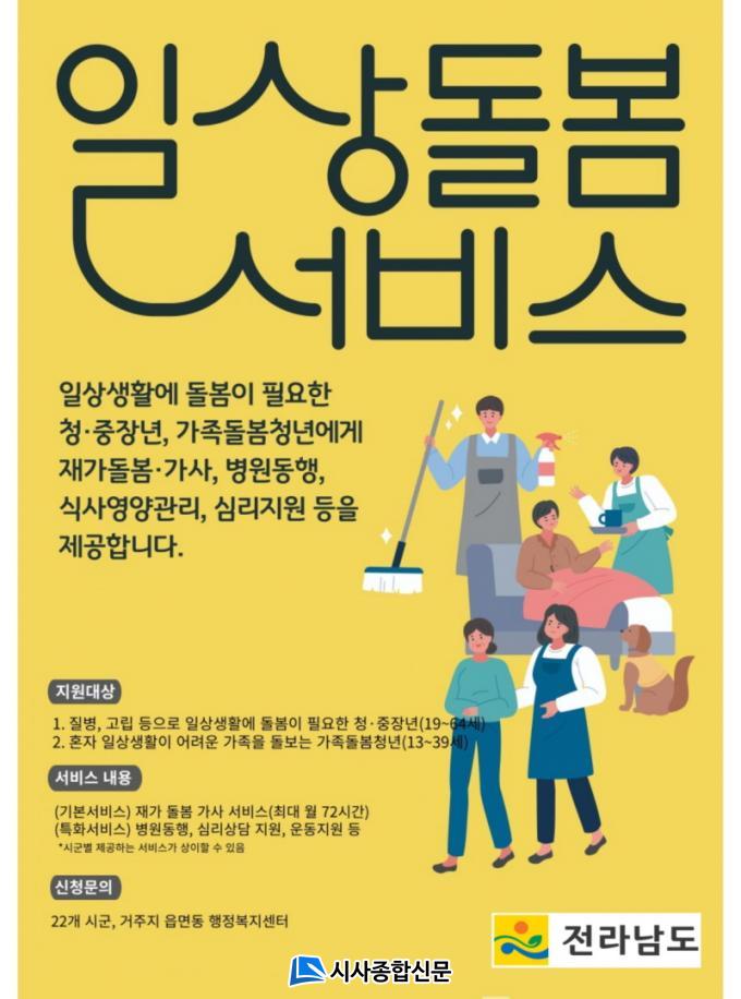 ÀÌ»ó½É Àü³²µµ º¸°Çº¹Áö±¹ÀåÀº ¡°È¥ÀÚ¼ ÀÏ»ó»ýȰÀÌ ¾î·Á¿ü´ø û¡¤ÁßÀå³âÀ̳ª ¾ÆÇ °¡Á·À» µ¹º¸´Â °¡Á·µ¹º½ û³âÀÌ Àϻ󵹺½¼ºñ½º¸¦ ÅëÇØ »îÀÇ ÁúÀ» ³ôÀÏ °ÍÀ¸·Î ±â´ëÇÑ´Ù¡±¸ç ¡°»ç¾÷ ÃʱâÀÎ ¸¸Å ÀÌ¿ëÀÚ È®º¸¿Í ¼ºñ½º ü°è ±¸Ãà¿¡ Èû½á µ¹º½ÀÌ ÇÊ¿äÇÑ µµ¹Î¿¡°Ô Æø³ÐÀº º¹Áö¼ºñ½º¸¦ Á¦°øÅä·Ï Çϰڴ١±°í ¸»Çß´Ù.