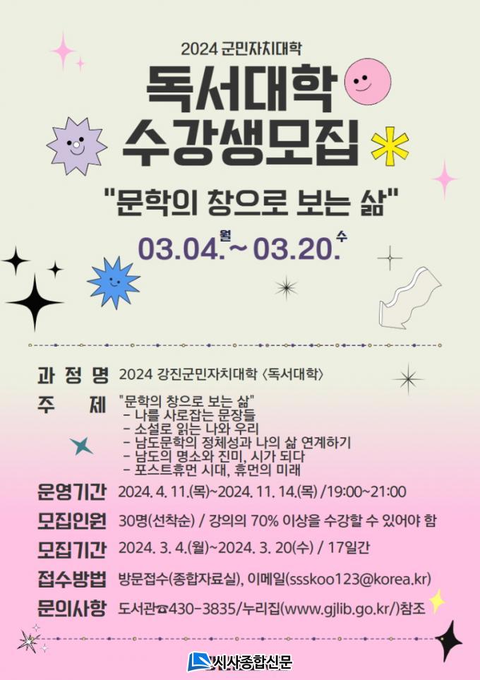 [½Ã»çÁ¾ÇսŹ® = ¿À½ÂÅà ±âÀÚ] °Áø±ºµµ¼°üÀÌ 2024³â µ¶¼´ëÇÐ ½ÅÀÔ»ýÀ» ¸ðÁýÇÑ´Ù.