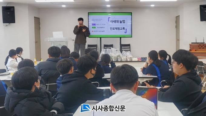 [½Ã»çÁ¾ÇսŹ® = ¿À½ÂÅà ±âÀÚ] ±¤ÁÖ³ó¾÷±â¼ú¼¾ÅͰ¡ Áß‧°íµîÇб³¿¡¼ ½Ç½ÃÇÏ´Â Áø·ÎüÇè±³À° Áö¿ø»ç¾÷À» ÆîÄ£´Ù. Çб³ Áø·ÎüÇè±³À° ÇÁ·Î±×·¥¿¡ ³ó½Äǰ»ý¸í ºÐ¾ß Àü¹®°¡¸¦ ÆÄ°ßÇÏ´Â ¡®Â÷¼¼´ë ³ó¾÷ Áø·ÎüÇè±³À° »ç¾÷¡¯ÀÌ´Ù.