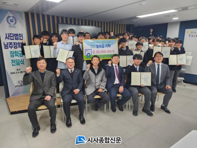 [½Ã»çÁ¾ÇսŹ® = °í¼º¹Î ±âÀÚ] ³²ÁÖ°íµîÇб³ Ãѵ¿Ã¢È¸¿Í (»ç)³²ÁÖÀåÇÐȸ°¡ Áö³ 4ÀÏ ³²ÁÖ°íµîÇб³(±³Àå °¿µÃ¶)¸¦ ¹æ¹®ÇÏ¿© ÀåÇÐ±Ý Àü´Þ Çà»ç¸¦ ÁøÇàÇÏ¿´´Ù. ¾çâ¿î Ãѵ¿Ã¢È¸Àå°ú °í¿Õ°æ (»ç)³²ÁÖÀåÇÐȸ ÀÌ»çÀåÀÌ ÀÌ Çà»ç¿¡ Âü¿©ÇÏ¿© 30¿© ¸íÀÇ Çлý¿¡°Ô ÀåÇÐ±Ý 3,000¸¸ ¿øÀ» Àü´ÞÇÏ¿´´Ù.