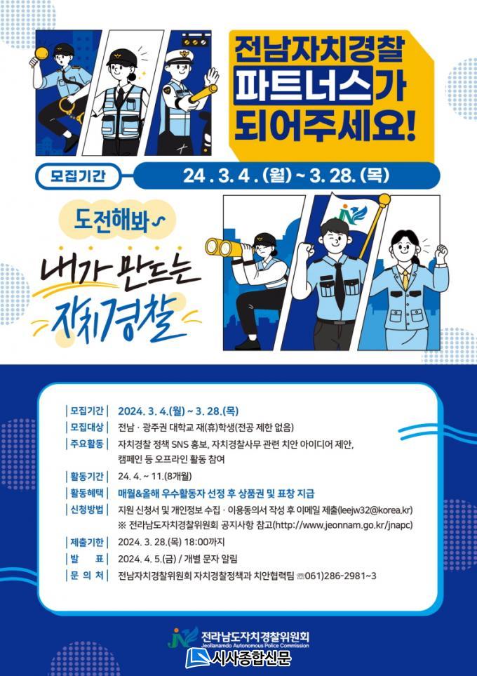 ÀÚÄ¡°æÂû¿¡ °ü½ÉÀÌ ¸¹°í È«º¸È°µ¿¿¡ Àû±ØÀûÀÎ ±¤ÁÖ¡¤Àü³² ´ëÇлýÀÌ¸é °³ÀÎ ¶Ç´Â ÆÀÀ» ±¸¼ºÇØ ´©±¸³ª Áö¿øÇÒ ¼ö ÀÖ´Ù. ½ÅûÀº Àü³²ÀÚÄ¡°æÂûÀ§¿øÈ¸ ´©¸®Áý(www.jeonnam.go.kr/jnapc)¿¡ Á¢¼ÓÇØ ¿Â¶óÀÎ ½Åû¼¸¦ ÀÛ¼ºÇÑ ÈÄ À̸ÞÀÏ·Î Á¦ÃâÇÏ¸é µÈ´Ù.