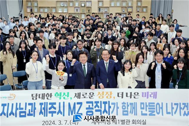 ÀÌ¾î ¡°MZ¼¼´ë °øÁ÷ÀÚ´Â µðÁöÅÐ ±â¼ú¿¡ ´É¼÷ÇÏ°í »õ·Î¿î ¾ÆÀ̵ð¾î¸¦ °¡Áø ¼¼´ë·Î, Á¦ÁÖµµÀÇ ¹Ì·¡¸¦ À̲ø¾î°¥ ÁÖ¿ª¡±À̶ó¸ç, ¡°Á¦ÁÖ°¡ ´ëÇѹα¹ º¯¹æÀÇ ¼¶ÀÌ ¾Æ´Ï¶ó ¹Ì·¡·Î ³ª¾Æ°¡´Â ÃÖ¼±µÎ¿¡ ÀÖ´Ù´Â ÀںνÉÀ¸·Î ¿ªÇÒÀ» ´ÙÇØ´Þ¶ó¡±°í ´çºÎÇß´Ù. À̾îÁø MZ¼¼´ë °ø¹«¿øµé°úÀÇ ´ëÈ¿¡¼´Â Á¦ÁÖµµÁ¤ Á¤Ã¥ ¹æÇâ»Ó¸¸ ¾Æ´Ï¶ó µµÁö»ç¿¡°Ô Æò¼Ò ±Ã±ÝÇß´ø Á¡À» ¿öµåŬ¶ó¿ìµå ÇÁ·Î±×·¥À» Ȱ¿ëÇÑ Å°¿öµå·Î ¹¯°í ´äÇÏ´Â ½Ã°£À» °¡Á³´Ù.