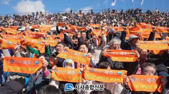 À̳¯ Á¦ÁÖµµ °øÁ÷ÀÚ 400¿© ¸íµµ °æ±âÀå¿¡ ÇÔ²² ÇØ °íÇâ»ç¶û±âºÎÁ¦, 2025 ¾Æ½Ã¾ÆÅÂÆò¾ç°æÁ¦Çù·Âü(APEC) Á¤»óȸÀÇ Á¦ÁÖ À¯Ä¡ µî µµÁ¤ ½ÃÃ¥À» ¾Ë¸®´Â ´ëÇü Çö¼ö¸· ÆÛÆ÷¸Õ½º¸¦ ¼±º¸ÀÌ´Â µî ¿ªµ¿ÀûÀÎ Á¦ÁÖÀÇ È°µ¿À» ±¹³»¿Ü¿¡ ³Î¸® È«º¸ÇÏ´Â ÀåÀ¸·Î »ï±âµµ Çß´Ù.