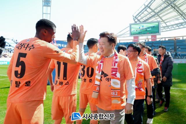 ¿À¿µÈÆ Áö»ç´Â Á¦ÁÖ À¯³ªÀÌÆ¼µå À¯´ÏÆûÀ» ÀÔ°í Âü¼®ÇØ ¼±¼ö´Ü°ú °ü°èÀÚµéÀ» °Ý·ÁÇϰí, Á¦ÁÖ À¯³ªÀÌÆ¼µåÀÇ ½Â¸® ±â¿ø°ú 2025 ¾Æ½Ã¾ÆÅÂÆò¾ç°æÁ¦Çù·Âü(APEC) Á¤»óȸÀÇ Á¦ÁÖ À¯Ä¡ ÀÇÁö¸¦ ´ã¾Æ ½ÃÃà¿¡ ³ª¼¹´Ù. °æ±â¿¡ ¾Õ¼ Á¦ÁÖ À¯³ªÀÌÆ¼µåFC ´ëÇ¥ÀÌ»ç¿Í °¨µ¶, ¼±¼ö´Ü ´ëÇ¥°¡ Á¦ÁÖ¿¡ °íÇâ»ç¶û±âºÎ±ÝÀ» Àü´ÞÇϸç Á¦ÁÖ»ç¶ûÀ» ½ÇõÇß´Ù.