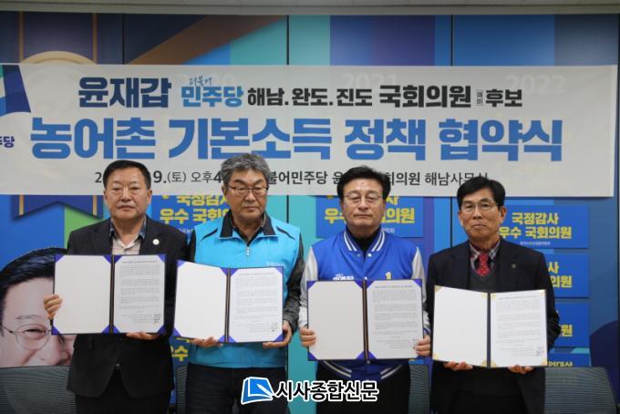 [½Ã»çÁ¾ÇսŹ® = ¿À½ÂÅà ±âÀÚ] À±Àç°© ¿¹ºñÈĺ¸(Çö ´õºÒ¾î¹ÎÁÖ´ç ÇØ³²¡¤¿Ïµµ¡¤Áøµµ ±¹È¸ÀÇ¿ø)´Â 9ÀÏ ³ó¾îÃÌ ±âº»¼ÒµæÀü±¹¿¬ÇÕ°ú ³ó¾îÃÌ ±âº»¼Òµæ Áö±Þ °ø¾à Á¦½Ã¡¤½ÇõÀÇ ³»¿ëÀ» ´ãÀº Á¤Ã¥Çù¾àÀ» ü°áÇß´Ù.