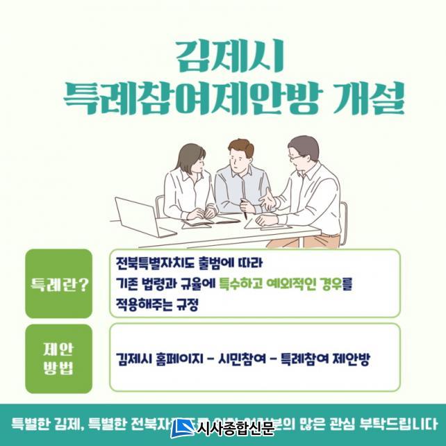 Á¤¼ºÁÖ ±èÁ¦½ÃÀåÀº ¡°Æ¯º°¹ý¿¡ ´ã±ä °¢Á¾ Ư·Ê´Â Áö¿ªÀÇ ¿©·¯ »ç¾÷ ¹× ¹ßÀü Àü·«°ú ¹ÐÁ¢ÇÑ ¿¬°üÀÌ ÀÖ´Â Áß¿äÇÑ ¿ä¼Ò¡±¶ó¸ç, ¡°±èÁ¦½Ã¹ÎÀÇ ¼ÒÁßÇÑ °ü½É°ú ¾ÆÀ̵ð¾î¸¦ ¸ð¾Æ ÇØ´çºÎ¼ °ËÅä ÈÄ Æ¯º°¹ý¿¡ ¹Ý¿µµÉ ¼ö ÀÖµµ·Ï ÀüºÏÀÚÄ¡µµ¿¡ Àû±Ø °ÇÀÇÇÒ ¿¹Á¤ÀÌ´Ï Àû±ØÀûÀÎ Âü¿©¿Í ¸¹Àº °ü½ÉÀ» ºÎʵ台´Ù¡±°í ¸»Çß´Ù.