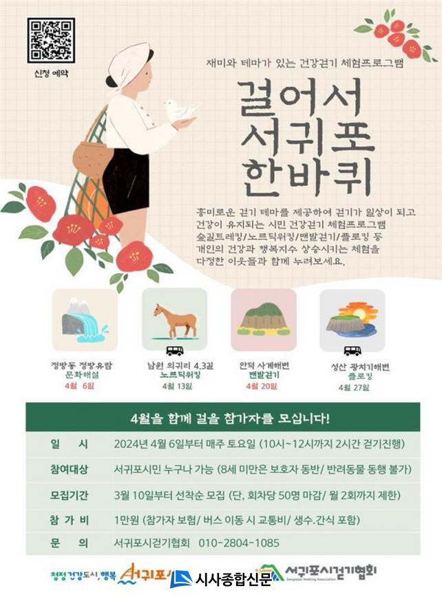 ¡®°É¾î¼ ¼±ÍÆ÷½Ã ÇѹÙÄû¡¯4¿ù ÇÁ·Î±×·¥ ÀÏÁ¤Àº 4¿ù6ÀÏ ¢º Á¤¹æµ¿ Á¤¹æÀ¯¶÷(¹®ÈÇØ¼³), 4¿ù 13ÀÏ ¢º ³²¿ø ÀDZ͸® 4.3±æ(³ë¸£µñ¿öÅ·), 4¿ù20ÀÏ ¢º ¾È´ö »ç°èÇØº¯(¸Ç¹ß°È±â), 4¿ù27ÀÏ ¢º ¼º»ê ±¤Ä¡±âÇØº¯(Ç÷αë) ÄÚ½º¸¦ Å׸¶º°·Î Áö¿ª Ư¼º¿¡ ¸Â°Ô ¿î¿µÇÑ´Ù.