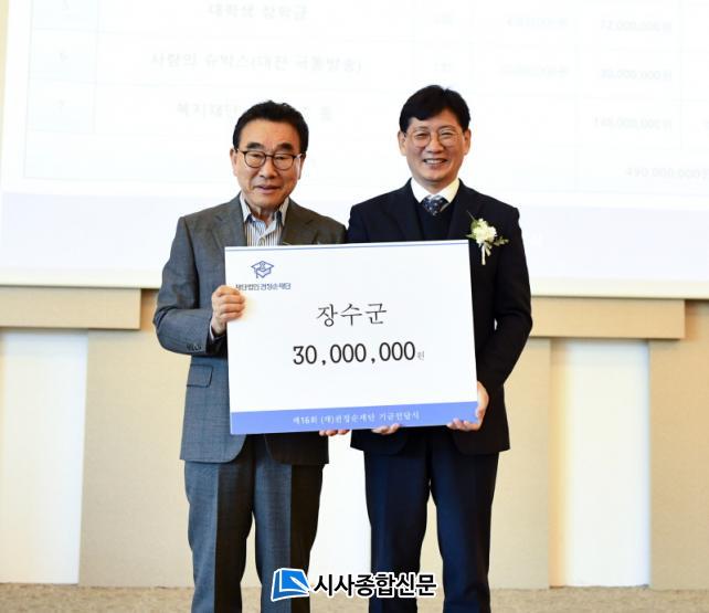 ÃÖÈÆ½Ä Àå¼ö±º¼ö´Â ¡°°í(ͺ) ±ÇÁ¤¼ø ¿©»çÀÇ ¶æÀ» ´ãÀº À̹ø ÀåÇбÝÀº Àå¼öÁö¿ªÀÇ ÀÎÀç·Î ÀÚ¶ó³¯ Çлýµé¿¡°Ô Å« ÈûÀÌ µÉ °Í¡±ÀÌ¸ç ¡°ÇлýµéÀÌ º¸´Ù ³ªÀº ¹Ì·¡¸¦ ±×¸± ¼ö ÀÖµµ·Ï Àå¼ö±º°ú ¾ÖÇâ±³À°ÁøÈïÀç´Ü¿¡¼ ´Ù¾çÇÑ ÀåÇлç¾÷À¸·Î º¸´äÇϰڴ١±°í °¨»çÀÇ Àλ縦 ÀüÇß´Ù.