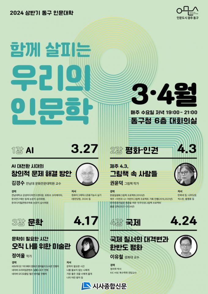 ¿ÃÇØ µ¿±¸ Àι®´ëÇÐÀº ±è°æ¼ö Àü³²´ë ±³¼öÀÇ ¡®AI(ÀΰøÁö´É) ´ëÀüȯ ½Ã´ë âÀÇÀû ¹®Á¦ ÇØ°á ¹æ¾È¡¯À¸·Î ù¹ßÀ» ¶¾´Ù. ÀÌ¾î ¡ã4¿ù 3ÀÏ ±ÇÀ±´ö ±×¸²Ã¥ ÀÛ°¡°¡ ¡®Á¦ÁÖ 4¡¤3, ±×¸²Ã¥ ¼Ó »ç¶÷µé¡¯À» ÁÖÁ¦·Î ÇÑ ±×¸²Ã¥ ¡®³ª¹«µµÀ塯À» Á¦ÀÛÇÏ¸ç ¸¸³ »çÁø ¼Ó »ç¶÷µéÀ» ÅëÇØ »ç°ú¿Í ¿ë¼, ÈÇØ¿Í »ó»ý, ÆòÈ¿Í Àαǿ¡ ´ëÇØ »ý°¢Çغ¸´Â ½Ã°£À» °®´Â´Ù.