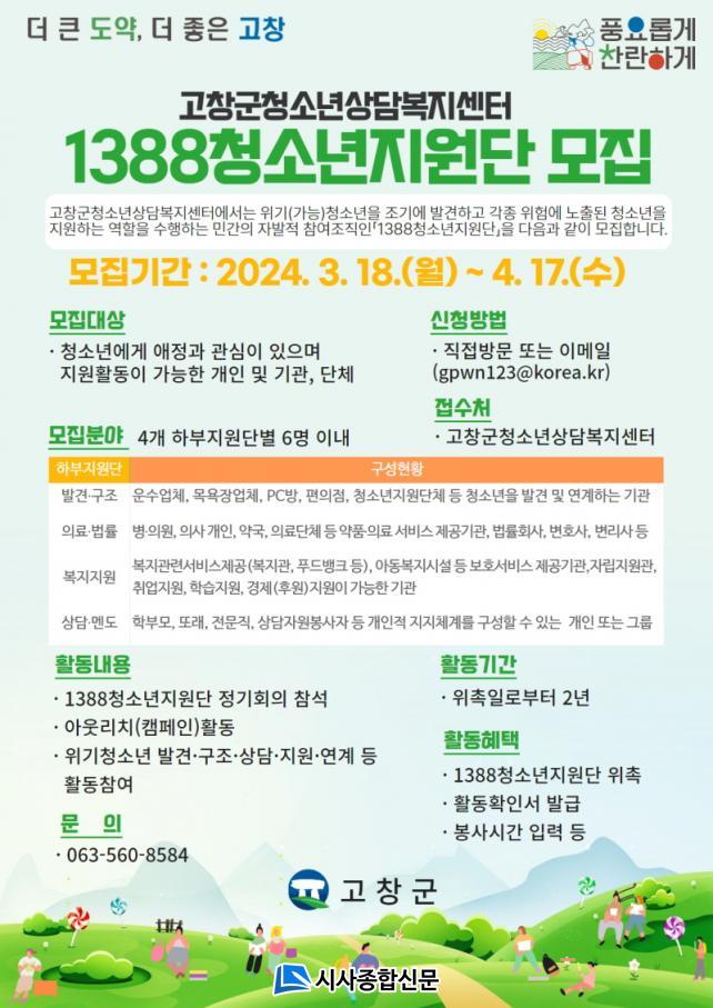 1388û¼Ò³âÁö¿ø´ÜÀº û¼Ò³â¾ÈÀü¸ÁÀÇ ÀϺημ, À§±â(ÀáÀç)û¼Ò³âÀ» Á¶±â¿¡ ¹ß°ßÇϰí À§Çè¿¡ ³ëÃâµÈ û¼Ò³â°ú À§±âû¼Ò³â¿¡°Ô À¯¡¤¹«»óÀÇ ÀÚ¿øÀ» Áö¿øÇϱâ À§ÇÑ ÀÚ¹ßÀûÀÎ ¹Î°£ Âü¿©Á¶Á÷ÀÌ´Ù. û¼Ò³â¿¡ ´ëÇÑ °ü½É°ú ¾ÖÁ¤ÀÌ ÀÖ´Â ±º¹ÎÀ̶ó¸é ´©±¸³ª(°³ÀÎ ¹× ±â°ü, ´Üü) Âü¿©°¡´ÉÇÏ´Ù.