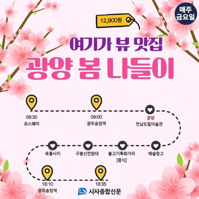 ±è¼º¼ö °ü±¤°úÀåÀº ¡°³²µµÇѹÙÄû ¡®¿©±â°¡ ºä ¸ÀÁý; ±¤¾ç º½³ªµéÀÌ¡¯´Â ±¤¾çÀÇ °íǰ°Ý ¹®È¿¹¼ú°ú Çâ±ßÇÑ º½²ÉÀ» ¸¸³£ÇÒ ¼ö ÀÖ´Â ¿©ÇàÀ¸·Î Ȧ°¡ºÐÇÑ ±Ý¿äÀÏÀÇ ¼³·½À» ¼±»çÇÒ °Í¡±À̶ó¸ç ¡°º½ÀÇ µµ½Ã·Î ¶°³ª´Â ±¤¾ç º½³ªµéÀÌ¿¡ ¸¹Àº °ü½É°ú Âü¿©¸¦ ¹Ù¶õ´Ù¡±°í ¸»Çß´Ù.