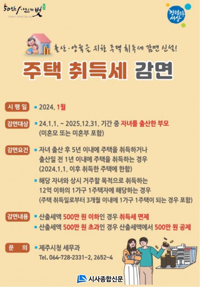 ÁÖÅà ±¸ÀÔ ÈÄ ¹ß»ýÇÏ´Â Ãëµæ¼¼¾×ÀÌ 500¸¸ ¿ø ÀÌÇÏÀÏ °æ¿ì¿¡´Â 100%, ÃʰúÇϸé 500¸¸ ¿ø Çѵµ ³»¿¡¼ Ãëµæ¼¼¸¦ °¨¸éÇÑ´Ù.´Ù¸¸, Ãâ»ê Áö¿øÀÇ Á¤Ã¥ ¸ñÀûÀ» °í·ÁÇØ ´ÙÁÖÅÃÀÚ´Â °¨¸éÀÌ ¹èÁ¦µÇ°í ÇØ´ç ÁÖÅÿ¡ Ãâ»ê ÀÚ³à¿Í 3³â ÀÌ»óÀ» »ó½Ã °ÅÁÖÇØ¾ß ÇÑ´Ù.