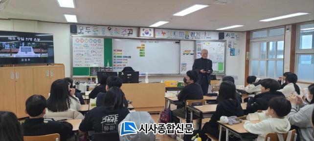 Á¦ÁÖµµ±³À°Ã» °ü°èÀÚ´Â ¡°Çб³°¡ ¼ÒÀçÇÑ Áö¿ª ¿ª»ç±³À°À» ±³À°°úÁ¤¿¡ ¹Ý¿µÇÏ¿© Á¦ÁÖ Ç×ÀϿ, À»¹¦¿Öº¯ Á¦ÁÖ´ëø µî Á¦ÁÖÁö¿ª ¿ª»çÀÇ Á߿伺À» ÀνÄÇϰí, ¿ª»çÀû »ç½Ç°ú Àǹ̸¦ °øÀ¯ÇÏ´Â Çлý Âü¿©¡¤Ã¼Çè Áß½ÉÀÇ ¿ª»ç ¼ö¾÷À» ÅëÇØ ÆòÈ¡¤Àαǡ¤»ó»ýÀÇ °¡Ä¡¸¦ ÇÔ¾çÇÏ´Â µ¥ ÁßÁ¡À» µÎ°í ÀÖ´Ù¡±¶ó¸ç¡°À̹ø ÇÁ·Î±×·¥À» ÅëÇØ Çлýµé¿¡°Ô Á¦ÁÖ Ç×ÀϿ¿¡ °üÇÑ °ü½É°ú ÀÌÇØ¸¦ ³ôÀ̰í Á¦ÁÖÀÎÀ¸·Î¼ÀÇ ÀÚ±à½É ¹× ¿ª»çÀǽÄÀ» °íÃëÇÏ´Â µ¥ µµ¿òÀÌ µÉ °ÍÀ¸·Î ±â´ëÇÑ´Ù¡±¶ó°í ¸»Çß´Ù.