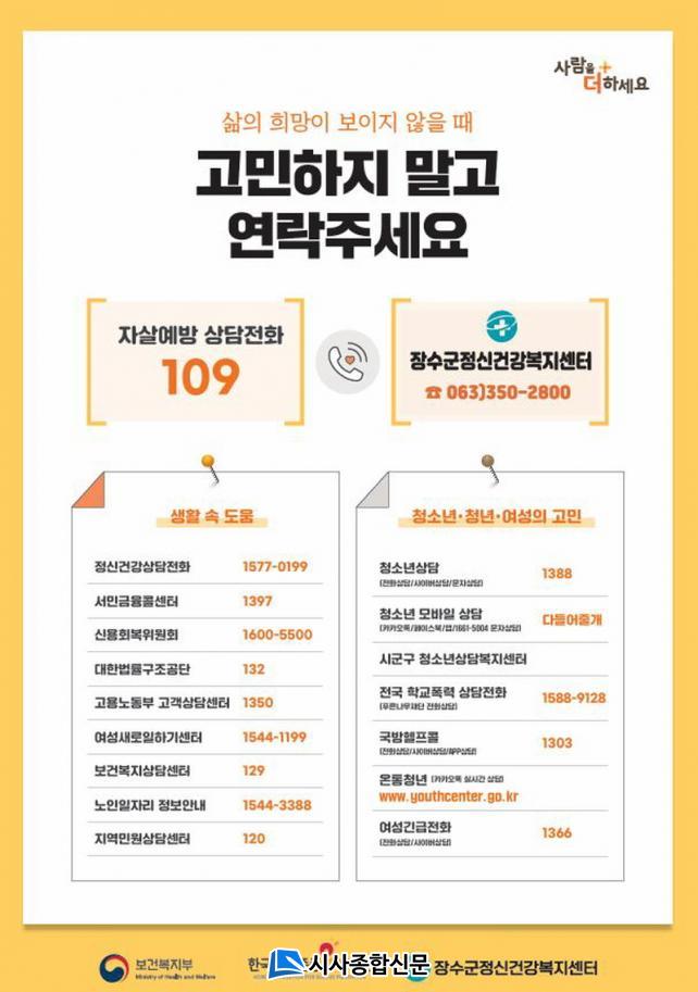 ÀÌ¿¡ Á¤½Å°Ç°º¹Áö¼¾ÅÍ´Â µî·Ï °ü¸® ÁßÀÎ ÀÚ»ì °íÀ§Ç豺¿¡ ´ëÇØ »ç·Ê°ü¸®¸¦ °ÈÇÏ°í ¾ÈºÎ ¹®ÀÚ ¹ß¼Û°ú ÀüÈ»ó´ã µî ÁýÁß °ü¸®¸¦ ½Ç½ÃÇÒ °èȹÀÌ´Ù. ¶ÇÇÑ À¯µ¿ Àα¸°¡ ¸¹Àº °ø°ø±â°ü ¹× ±º¹ÎÀÇ »ýȰ ¹ÐÂø½Ã¼³¿¡ »ó´ãÀüȹøÈ£ ¾È³» Æ÷½ºÅ͸¦ °Ô½ÃÇØ ÀÚ»ì °íÀ§Ç豺À» Àû±Ø ¹ß±¼ÇÒ ¿¹Á¤ÀÌ´Ù.