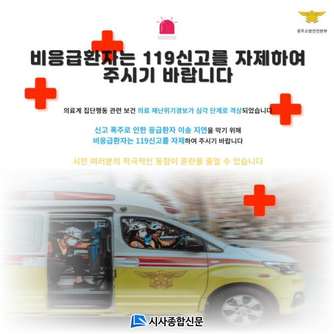 [½Ã»çÁ¾ÇսŹ® = ¿À½ÂÅà ±âÀÚ] ±¤ÁÖ±¤¿ª½Ã¼Ò¹æ¾ÈÀüº»ºÎ´Â ÃÖ±Ù ÀÇ·á°è Áý´ÜÇൿ ½ÉÈ·Î ÀÎÇÑ 119½Å°í ÆøÁÖ¿Í ÀÀ±ÞȯÀÚ ÀÌ¼Û Áö¿¬À» ¸·±â À§ÇØ ºñÀÀ±ÞȯÀÚÀÇ 119½Å°í ÀÚÁ¦¸¦ ´çºÎÇß´Ù.