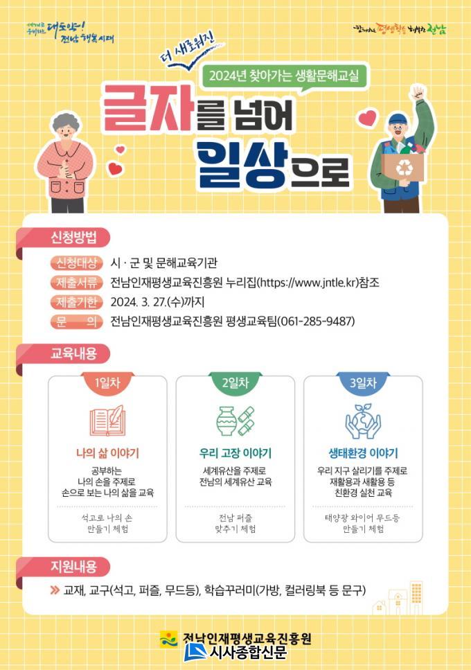 ƯÈ÷ ¿ÃÇØºÎÅÍ´Â ¹®ÇØÇнÀÀÇ ±³À° ÄÜÅÙÃ÷ ´Ù¾çȸ¦ À§ÇØ ½Å±Ô ÇÁ·Î±×·¥À» ¿î¿µÇÑ´Ù. ±³À° ÁÖÁ¦´Â ¡ã³ªÀÇ »î À̾߱⠡ã¿ì¸® °íÀå À̾߱⠡ã»ýÅÂȯ°æ À̾߱â·Î ±¸¼ºµÅ ¼ÕÀ¸·Î º¸´Â ³ªÀÇ »î, Àü³²ÀÇ ¼¼°èÀ¯»ê, ģȯ°æ ½Çõ ±³À° µî ¹®ÇØ ÇнÀÀÚÀÇ ±âÃÊ »ýȰ ´É·Â±³À°À» Áö¿øÇÑ´Ù. ¶ÇÇÑ ¹®ÇØÇнÀÀÚÀÇ ÇнÀ¿¡ ÇÊ¿äÇÑ ¹®±¸·ù, ±³Àç, ±³±¸, Ä÷¯¸µºÏ µî ÇнÀ²Ù·¯¹Ì¸¦ Á¦ÀÛÇØ Áö±ÞÇÑ´Ù.