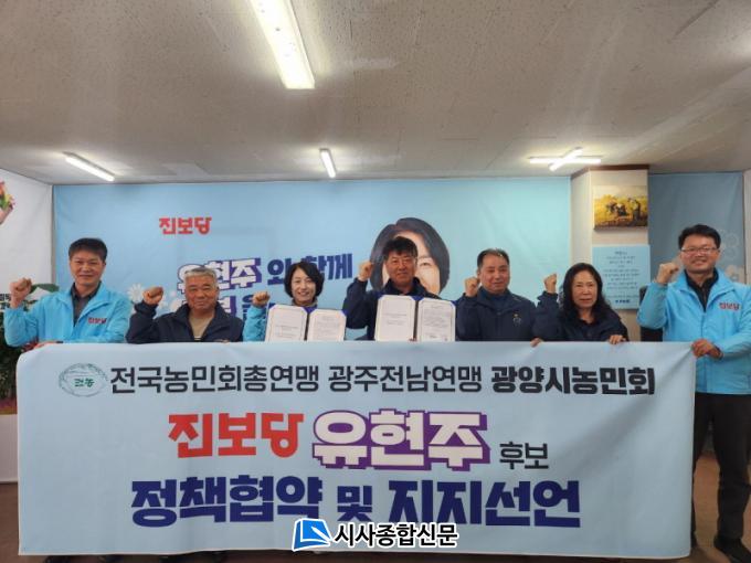 | Áøº¸´ç À¯ÇöÁÖ Èĺ¸, Àü±¹³ó¹ÎȸÃÑ¿¬¸Í ±¤ÁÖÀü³²¿¬¸Í ±¤¾ç½Ã³ó¹Îȸ¿Í Á¤Ã¥Çù¾à ü°á ±¤¾ç½Ã³ó¹Îȸ´Â Áøº¸´ç À¯ÇöÁÖÈ常¦ ÁöÁöÇϱâ·Î |