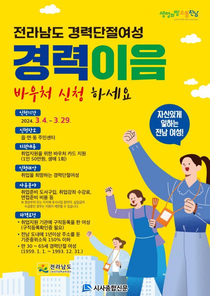 [½Ã»çÁ¾ÇսŹ® = ¿À½ÂÅà ±âÀÚ] Àü¶ó³²µµ´Â Ãâ»ê°ú À°¾Æ µîÀ¸·Î Á÷ÀåÀ» ±×¸¸µÐ ÈÄ ÀçÃë¾÷¿¡ ¾î·Á¿òÀ» °Þ´Â °æ·Â ´ÜÀý ¿©¼º¿¡°Ô ±¸Á÷¿¡ ÇÊ¿äÇÑ Ãë¾÷¡¤¸éÁ¢ Áغñ ºñ¿ëÀ» Áö¿øÇÏ´Â ¡®°æ·ÂÀÌÀ½¹Ù¿ìó¡¯ ÀÌ¿ëÀÚ¸¦ ¿À´Â 29ÀϱîÁö ¸ðÁýÇÑ´Ù°í ¹àÇû´Ù.