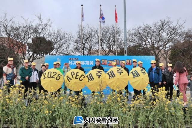 À̳¯ °³¸·½Ä¿¡¼´Â 2025 APEC Á¦ÁÖ À¯Ä¡¸¦ ±â¿øÇÏ´Â ´Ù¾çÇÑ Ä·ÆäÀεµ Àü°³µÇ¾ú´Âµ¥, ÀÌÁ¾¿ì ¼±ÍÆ÷½ÃÀå°ú ÇÑ․Áß․ÀÏ ´ëÇ¥´ÜÀº À¯Ã¤²ÉÀ» »ó¡ÇÏ´Â ³ë¶õ»ö ¿ì»êÀ» ÀÌ¿ëÇÏ¿© ÆÛÆ÷¸Õ½º¸¦ ÆîÃÆ°í ¡®APEC À¯Ä¡±â¿ø »çÀκ¼¡¯À» °üÁߵ鿡°Ô ³ª´©¾îÁÖ´Â À̺¥Æ®¿¡´Â Á¦ÁÖÀ¯³ªÀÌÆ¼µåFCµµ ÈûÀ» º¸ÅÉ´Ù.