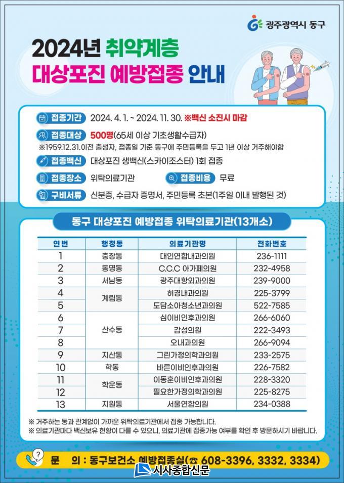Á¢Á¾ ´ë»óÀº ÃÑ 500¸íÀ¸·Î, µ¿±¸¿¡ Áֹεî·ÏÀ» µÎ°í 1³â ÀÌ»ó °ÅÁÖÇϰí ÀÖ´Â 65¼¼ ÀÌ»ó ±âÃÊ »ýȰ ¼ö±ÞÀÚ Áß¿¡¼ ´ë»óÆ÷Áø Á¢Á¾À» ¹ÞÀº ÀÌ·ÂÀÌ ¾ø´Â ÁÖ¹ÎÀÌ´Ù.