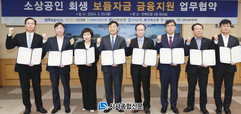 ÀüºÏƯº°ÀÚÄ¡µµ´Â 25ÀÏ µµÃ» ȸÀǽǿ¡¼ ±è°ü¿µ µµÁö»ç¿Í ³óÇùÀºÇà, ÀüºÏÀºÇà, ¿ì¸®ÀºÇà, ÇϳªÀºÇà, ±¹¹ÎÀºÇà, ½ÅÇÑÀºÇà µî µµ³» 6°³ ±ÝÀ¶±â°ü ´ëÇ¥°¡ Âü¼®ÇÑ °¡¿îµ¥ ¼Ò»ó°øÀΠȸ»ý ¡®º¸µëÀÚ±Ý ±ÝÀ¶Áö¿ø¡¯ ¾÷¹«Çù¾àÀ» ü°áÇß´Ù.