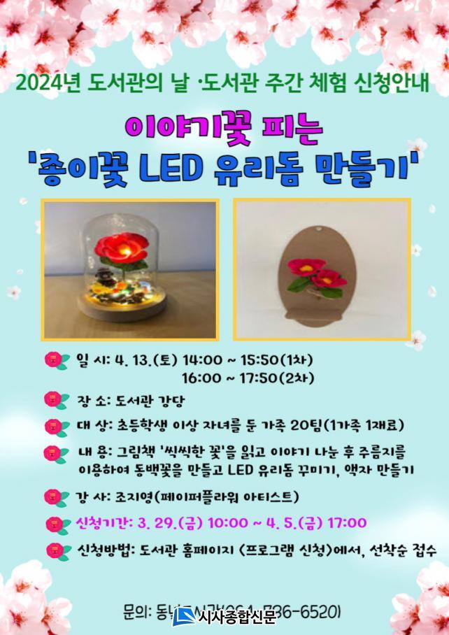 Á¶Áö¿µ(ÆäÀÌÆÛ Çöó¿ö ¾ÆÆ¼½ºÆ®) °»çÀÇ Áöµµ·Î ¡®¾¿¾¿ÇÑ ²É¡¯ ±×¸²Ã¥À» Àаí ÇÔ²² À̾߱⠳ª´« ÈÄ ÁÖ¸§Áö¸¦ ÀÌ¿ëÇÏ¿© µ¿¹é²ÉÀ» ¸¸µé°í LED À¯¸® µ¼ ²Ù¹Ì±â, ¾×ÀÚ ¸¸µé±â Ȱµ¿À» ÅëÇØ °¡Á· °£ÀÇ ÈÇÕ°ú ¼ÒÅëÀÇ ½Ã°£À» ¸¶·ÃÇÑ´Ù.