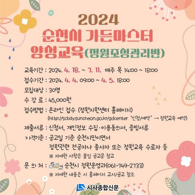 [½Ã»çÁ¾ÇսŹ® = Àå¹Î±Ô ±âÀÚ] ¼øÃµ½Ã(½ÃÀå ³ë°ü±Ô)´Â °¡µç¸¶½ºÅÍ ¾ç¼º±³À°(Á¤¿øÁ¶¼º°ü¸®¹Ý) ¼ö°»ý 30¸íÀ» 4¿ù 4ÀϺÎÅÍ 5ÀϱîÁö ÀÌÆ²°£ ¸ðÁýÇÑ´Ù°í ¹àÇû´Ù.