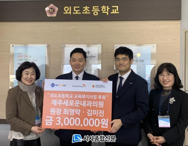 [½Ã»çÁ¾ÇսŹ® = °í¼º¹Î ±âÀÚ] ¿ÜµµÃʵîÇб³(±³Àå ±èâÈñ)´Â Áö³ 27ÀÏ ±³Àå½Ç¿¡¼ ¿ùµåºñÀüÁ¦ÁÖ³ª´®¼¾ÅÍ-Á¦ÁÖ»õ·Î¿î³»°ú¿¡¼ ÈÄ¿øÇÏ´Â ±³À°º¹ÁöÀåÇÐ±Ý Àü´Þ½ÄÀ» °¡Á³´Ù.