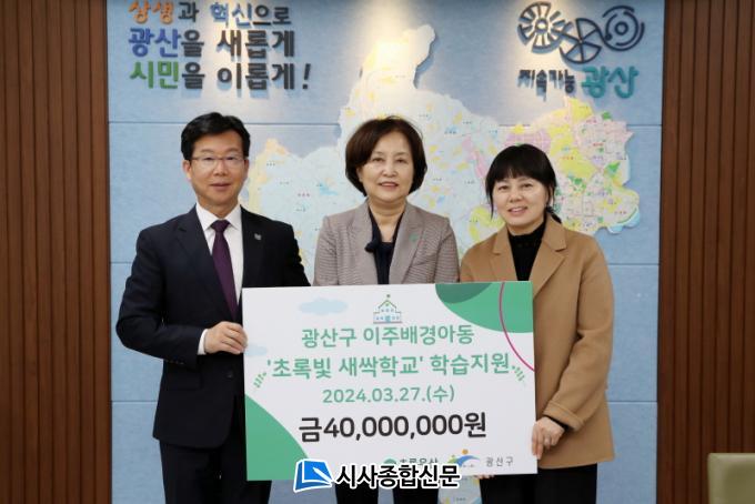 [½Ã»çÁ¾ÇսŹ® = ¿À½ÂÅà ±âÀÚ] ÃÊ·Ï¿ì»ê ±¤ÁÖÁö¿ªº»ºÎ(º»ºÎÀå ±èÀº¿µ)´Â ±¤»ê±¸Ã» 2Ãþ ±¸Ã»Àå½Ç¿¡¼ ±¤ÁÖ±¤¿ª½Ã ±¤»ê±¸(±¸Ã»Àå ¹Úº´±Ô), ±¤»ê±¸ °¡Á·¼¾ÅÍ(¼¾ÅÍÀå ÀåÀº¹Ì)¿Í ÇÔ²² ÀÌÁÖ¹è°æ¾Æµ¿ÀÇ ÇнÀÁö¿øÀ» À§ÇÑ ¡®ÃʷϺû »õ½ÏÇб³¡¯ ÈÄ¿ø±Ý 4,000¸¸¿øÀ» Àü´ÞÇß´Ù°í ¹àÇû´Ù.