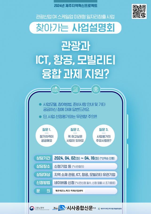 Á¦ÁÖÆ¯º°ÀÚÄ¡µµ¿Í Á¦ÁÖÅ×Å©³ëÆÄÅ©(¿øÀå ¹®¿ë¼®, Á¦ÁÖTP)´Â 2024³â °í¿ë³ëµ¿ºÎ °ø¸ð»ç¾÷À¸·Î ¼±Á¤µÈ Áö¿ªÇõ½ÅÇÁ·ÎÁ§Æ® ¡®°ü±¤»ê¾÷ DX ½ºÄÉÀϾ÷ ¹Ì·¡Çü ÀÏÀÚ¸®Ã¢Ãâ »ç¾÷¡¯¿¡ Âü¿©ÇÒ ±â¾÷À» ¿À´Â 19ÀϱîÁö ¸ðÁýÇϰí ÀÖ´Ù.