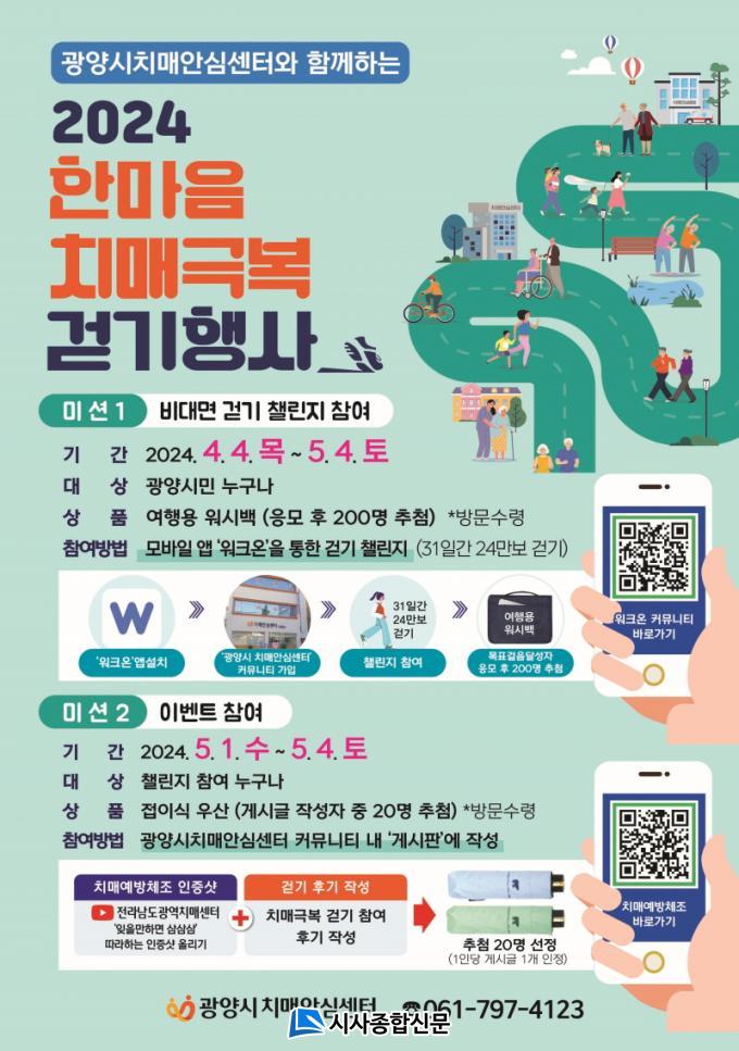 ±¤¾ç½Ã¹ÎÀÌ¸é ´©±¸³ª Âü¿©ÇÒ ¼ö ÀÖÀ¸¸ç, Âü¿©¸¦ Èñ¸ÁÇÏ´Â ½Ã¹ÎÀº ¸ð¹ÙÀÏ °È±â ¾ÖÇø®ÄÉÀÌ¼Ç ¡®¿öÅ©¿Â(Walkon)¡¯À» ¼³Ä¡ÇÑ ÈÄ ±¤¾ç½Ã Ä¡¸Å¾È½É¼¾ÅÍ °ø½Ä Ä¿¹Â´ÏƼ °¡ÀÔÇÏ°í ¡®ÇѸ¶À½ Ä¡¸Å±Øº¹ °È±âÇà»ç¡¯ 縰Áö¿¡ Âü¿©ÇÏ¸é µÈ´Ù.