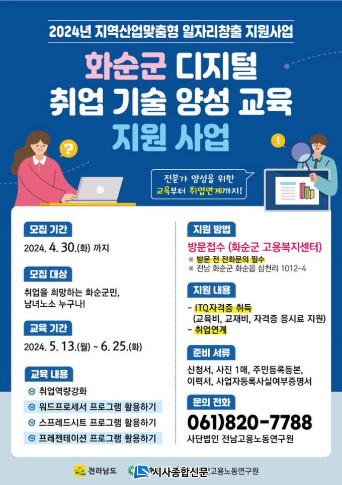 ¡®È¼ø±º µðÁöÅÐ Ãë¾÷±â¼ú ¾ç¼º ±³À° Áö¿ø»ç¾÷¡¯Àº '2024³â Àü¶ó³²µµ Áö¿ª»ê¾÷ ¸ÂÃãÇü ÀÏÀÚ¸® âÃâ Áö¿ø»ç¾÷ÀÇ ÀÏȯÀ¸·Î ȼø±ºÀÌ ÁÖ°üÇϸç, (»ç)Àü³²°í¿ë³ëµ¿¿¬±¸¿øÀÌ »ç¾÷¼öÇàÀ» ´ã´çÇÑ´Ù.