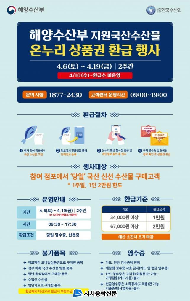 Çà»ç ±â°£¿¡ ºÏºÎ½ÃÀå, ÀÍ»êÀå ³» 18°³ ´ë»ó Á¡Æ÷¿¡¼ ±¹³» ¼ö»ê¹°À» ±¸¸ÅÇϸé ÀÏÁÖÀÏ ´ÜÀ§·Î(6~12ÀÏ, 13~19ÀÏ) ±¸¸Å±Ý¾×¿¡ µû¶ó 1ÀÎ ÃÖ´ë 2¸¸ ¿øÀÇ ¿Â´©¸®»óǰ±ÇÀ» ȯ±ÞÇØ ÁØ´Ù.