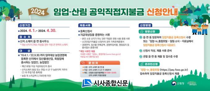 | À强±º, 2024³â ÀÓ¾÷Á÷ºÒ±Ý ½Åû Á¢¼ö 4¿ù 30ÀϱîÁö »êÁö ÇàÁ¤º¹Áö¼¾ÅÍ¿¡ ½Åû¼ Á¦Ã⡦ ¿Â¶óÀÎ Á¢¼öµµ °¡´É |