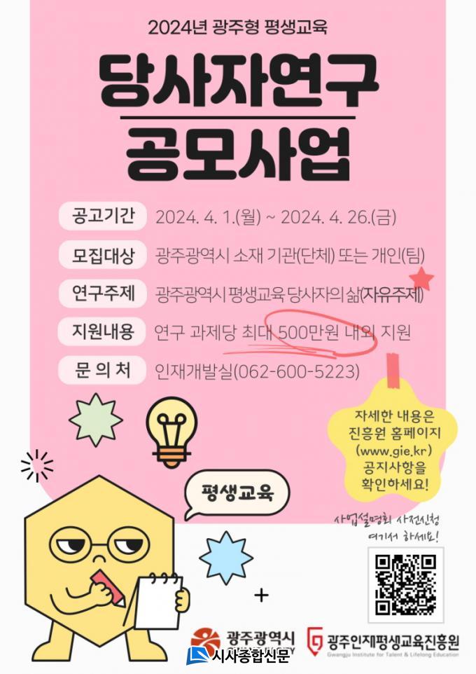 ±¤ÁÖÇü Æò»ý±³À° ´ç»çÀÚ¿¬±¸´Â ±¤ÁÖÁö¿ª¿¡ °ÅÁÖÇÏ´Â Æò»ý±³À° ´ç»çÀÚ°¡ º»ÀÎ(´Üü)ÀÇ »î°ú °ü·ÃµÈ ¹®Á¦¸¦ ½º½º·Î ¹ß±¼ÇØ ½ÇÈ¿¼º ÀÖ´Â Á¤Ã¥ÀÇÁ¦¿Í ´ë¾ÈÀ» Á¦½ÃÇÏ´Â ½Ã¹ÎÂü¿©Çü ¿¬±¸´Ù.