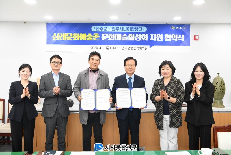 5ÀÏ ¿ÏÁÖ±ºÀº ¿ÏÁֽôϾîÇÕâ´Ü(´ÜÀå ±èÁöÇö)°ú »ï·Ê¹®È¿¹¼úÃÌ ¹®È¿¹¼úȰ¼ºÈ Áö¿ø»ç¾÷ Çù¾à½ÄÀ» °¡Á³´Ù. ¹®È¿¹¼úȰ¼ºÈ Áö¿ø»ç¾÷Àº °ü³» ¹®È¿¹¼ú´Üü¸¦ À°¼ºÇϰí, »ï·Ê¹®È¿¹¼úÃÌÀÇ È°¼ºÈ¸¦ À§ÇÑ »ç¾÷ÀÌ´Ù.