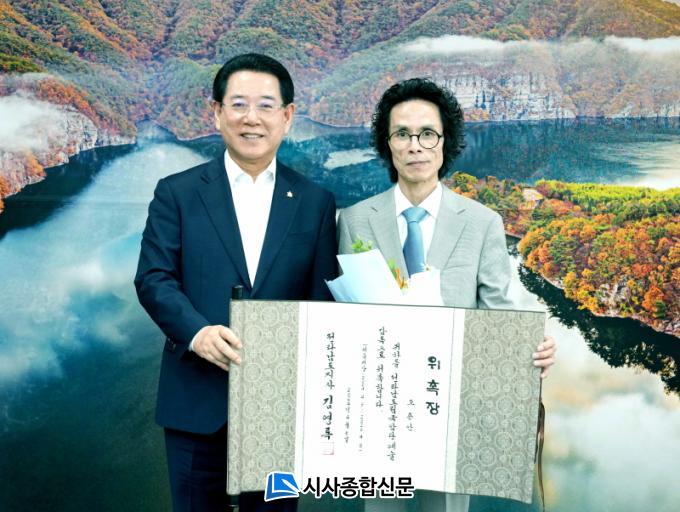 | ±è¿µ·Ï Àü¶ó³²µµÁö»ç°¡ 5ÀÏ µµÃ» Á¢°ß½Ç¿¡¼ Á¶¿ë¾È Á¦8´ë µµ¸³±¹¾Ç´Ü ¿¹¼ú°¨µ¶¿¡°Ô À§ÃËÀåÀ» ¼ö¿©ÇÏ°í ±â³äÃÔ¿µÀ» Çϰí ÀÖ´Ù. |