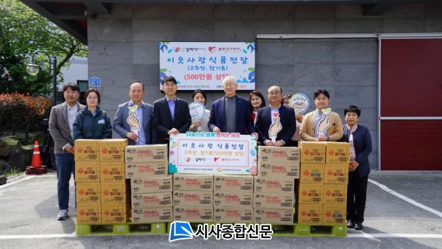 [½Ã»çÁ¾ÇսŹ® = °í¼º¹Î ±âÀÚ] ±è¸¸´öÀç´Ü(ÀÌ»çÀå ¾ç¿øÂù)Àº Áö³ 4¿ù 5ÀÏ Á¦ÁÖÆ¯º°ÀÚÄ¡µµ»çȸº¹ÁöÇùÀÇȸ(ȸÀå °í½ÂÈ, ÀÌÇÏ Á¦ÁÖ»çȸº¹ÁöÇùÀÇȸ)¿¡¼ ¿î¿µÇÏ´Â »ç¶û³ª´®Çªµå¸¶ÄÏ¡¤¹ðÅ©¿¡ 500¸¸¿ø »ó´çÀÇ ÀÌ¿ô»ç¶û ½Äǰ(°íÃßÀå 500°³, Âü±â¸§ 650°³)À» Àü´ÞÇß´Ù.