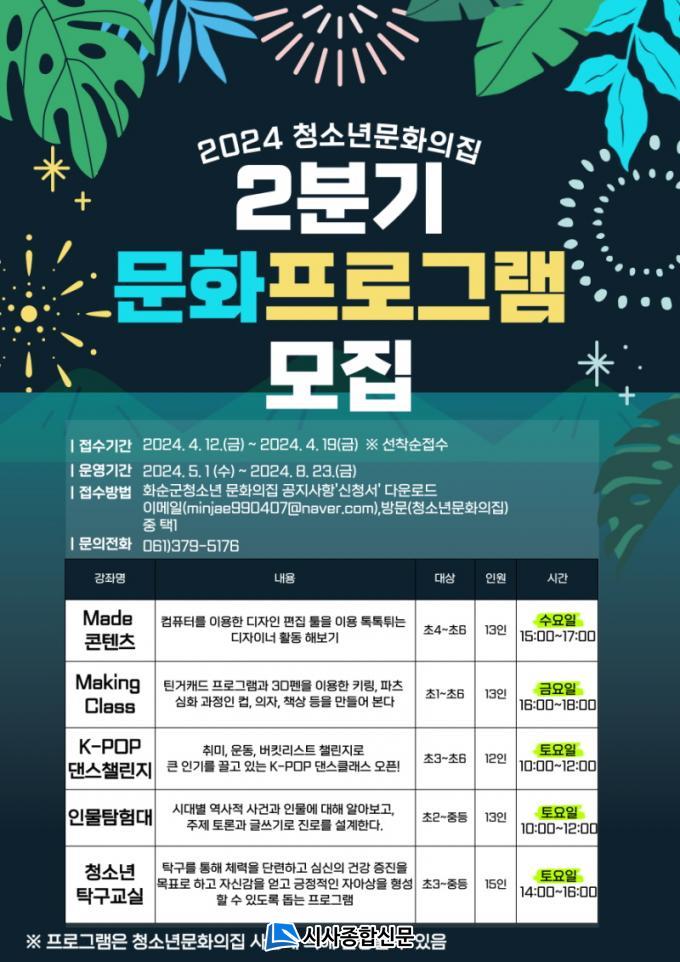 û¼Ò³â¹®ÈÀÇÁýÀ» ÀÌ¿ëÇϴ û¼Ò³â°ú ¿î¿µÀ§¿øÈ¸ÀÇ ÀǰßÀ» ¹Ý¿µÇØ ¡ãMade ÄÜÅÙÃ÷ ¡ã¡®Making Class¡¯ ¡ãK-POP ´í½º 縰Áö ¡ãÀι°Å½Çè´ë ¡ãû¼Ò³â ʱ¸ ±³½Ç 5°³ ÇÁ·Î±×·¥À» 5¿ù 1ÀϺÎÅÍ 8¿ù 23ÀϱîÁö ¸ÅÁÖ ÇØ´ç ¿äÀÏ¿¡ ¿î¿µÇÒ ¿¹Á¤ÀÌ´Ù.