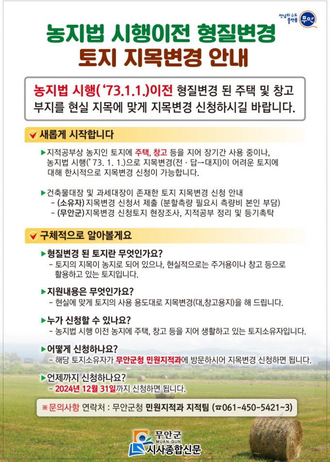 | ¹«¾È±º, ³óÁö¹ý ÀÌÀü ÇüÁúº¯°æ ÅäÁö Áö¸ñº¯°æ »ç¾÷ ÃßÁø |