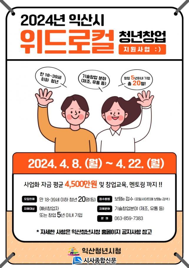 ½Ã´Â û³â â¾÷ Áö¿ø»ç¾÷ÀÎ 'À§µå·ÎÄà û³â â¾÷ Áö¿ø»ç¾÷'°ú 'ÀÍ»êÇü ·ÎÄÃÅ©¸®¿¡ÀÌÅÍ Áö¿ø»ç¾÷' Âü¿©ÀÚ¸¦ ¿À´Â 22ÀϱîÁö ¸ðÁýÇÑ´Ù. »ç¾÷ ´ë»óÀº ¸¸ 18¼¼ ÀÌ»ó 39¼¼ ÀÌÇÏ ¿¹ºñ â¾÷ÀÚ ¶Ç´Â â¾÷ 5³â À̳» Àü±¹ û³â â¾÷ ±â¾÷µéÀ̸ç, »ç¾÷º° 20ÆÀÀ» ¸ðÁýÇÒ ¿¹Á¤ÀÌ´Ù.