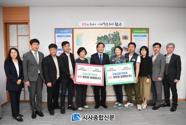 11ÀÏ ¿ÏÁÖ±º¿¡ µû¸£¸é ¿ÏÁÖ±º °ø¹«Á÷³ëµ¿Á¶ÇÕ(À§¿øÀå ±è»ó°ï), ±èÁ¦½Ã °ø¹«Á÷³ëµ¿Á¶ÇÕ(À§¿øÀå ¾È¿ëÁÖ), ¹«ÁÖ±º °ø¹«Á÷ ³ëµ¿Á¶ÇÕ(ÁöºÎÀå ¿À¼ø´ö)Àº ±ºÃ» ±º¼ö½ÇÀ» ã¾Æ °íÇâ»ç¶û±âºÎÁ¦ Ȱ¼º¿¡ ´ëÇÑ ´Ù¾çÇÑ ÀǰßÀ» ±³·ùÇϰí, Çù·ÂÇϱâ·Î Çß´Ù.