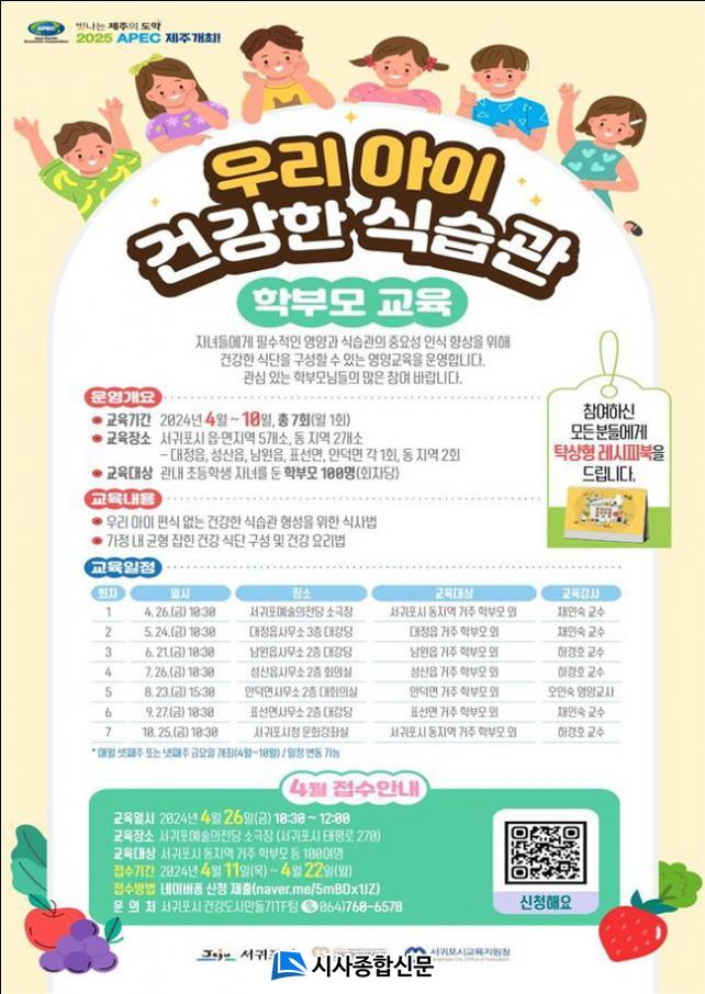 4¿ù ¼±ÍÆ÷½Ã µ¿ Áö¿ª Çкθð 100¿© ¸í ´ë»ó ±³À°À» ½ÃÀÛÀ¸·Î 5¿ù ´ëÁ¤À¾, 6¿ù ³²¿øÀ¾, 7¿ù ¼º»êÀ¾, 8¿ù ¾È´ö¸é, 9¿ù Ç¥¼±¸éÀ» °ÅÃÄ 10¿ù ¼±ÍÆ÷½Ã µ¿ Áö¿ª¿¡¼ ¸¶¹«¸®µÇ¸ç, Á¦ÁÖ´ëÇб³ ½Äǰ¿µ¾çÇаú äÀμ÷ ±³¼ö, ÇϰæÈ£ ±³¼ö¿Í ÇöÁ÷ ÃʵîÇб³ ¿µ¾ç±³»çÀÎ ¿ÀÀμ÷ ±³»ç°¡ ±³À°À» ¸Ã¾Æ ÁøÇàÇÒ ¿¹Á¤ÀÌ´Ù.
