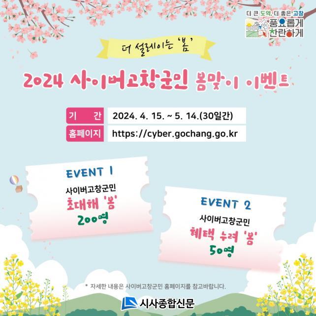 À̺¥Æ®´Â »çÀ̹ö°íⱺ¹ÎÀÌ µÇ°í½ÍÀº ´©±¸³ª °£ÆíÇÏ°Ô »çÀ̹ö °íⱺ¹Î ȨÆäÀÌÁö¿¡ °¡ÀÔÇÏ¿© Âü¿©ÇÒ ¼ö ÀÖ´Ù.¸ÕÀú, ¡®»çÀ̹ö°íⱺ¹Î ÃÊ´ëÇØ º½¡¯ À̺¥Æ®´Â ȨÆäÀÌÁö¿¡¼ »çÀ̹ö±º¹ÎÁõÀ» ¹ß±ÞÇØ °³ÀÎ »çȸ°ü°è¸Á¼ºñ½º(SNS)¿¡ È«º¸ ÈÄ È¨ÆäÀÌÁö À̺¥Æ®°Ô½ÃÆÇ¿¡ ±ÛÀ» ³²±â¸é Ãß÷À» ÅëÇØ 200¸í¿¡°Ô ¸ð¹ÙÀÏ»óǰ±ÇÀ» ¼±¹°ÇÑ´Ù.