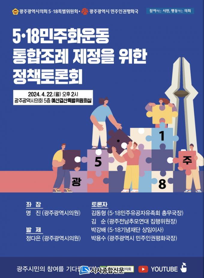 ±¤ÁÖ±¤¿ª½Ã¿Í °øµ¿°³ÃÖÇÏ´Â À̳¯ Åä·Ðȸ´Â 5¡¤18¹ÎÁÖȿ °ü·Ã 11°³ÀÇ Á¶·Ê¸¦ 1°³ÀÇ ÅëÇÕÁ¶·Ê·Î Á¦Á¤ÇϰíÀÚ ½Ã¹Î°ú Àü¹®°¡µéÀÇ ÀǰßÀ» ûÃëÇϱâ À§ÇØ ¸¶·ÃµÇ¾ú´Ù.