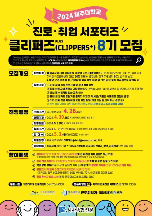 2017³â Ãë¾÷ ¼Æ÷ÅÍÁî CLIPPERS·Î ½ÃÀÛµÈ Áø·ÎÃë¾÷ ¼Æ÷ÅÍÁî´Â ¿ÃÇØ·Î 8³â Â÷ ¿î¿µµÇ¸ç, ¼±¹ßµÈ ÇлýµéÀº ¿ÃÇØ 5¿ùºÎÅÍ ³»³â 2¿ù±îÁö ¡®Áö¿ª û³âÀ» À§ÇÑ Áø·Î, Ãë‧â¾÷ Á¤º¸ ¹× Áö¿ø HUB¡¯·Î Áø·Î‧Ãë¾÷ Áö¿ø ÇÁ·Î±×·¥ ¹× û³â Á¤Ã¥ È«º¸, ÀÚü È«º¸ ÄÜÅÙÃ÷ ±âȹ‧¿î¿µ, ÀÏÀÚ¸® À¯°ü±â°ü °ü°èÀÚ °£´ãȸ Âü¿©»Ó ¾Æ´Ï¶ó È«º¸ ¹× Ãë¾÷¿ª·® °È ±³À°±îÁö Áö¿ø¹Þ°Ô µÈ´Ù.
